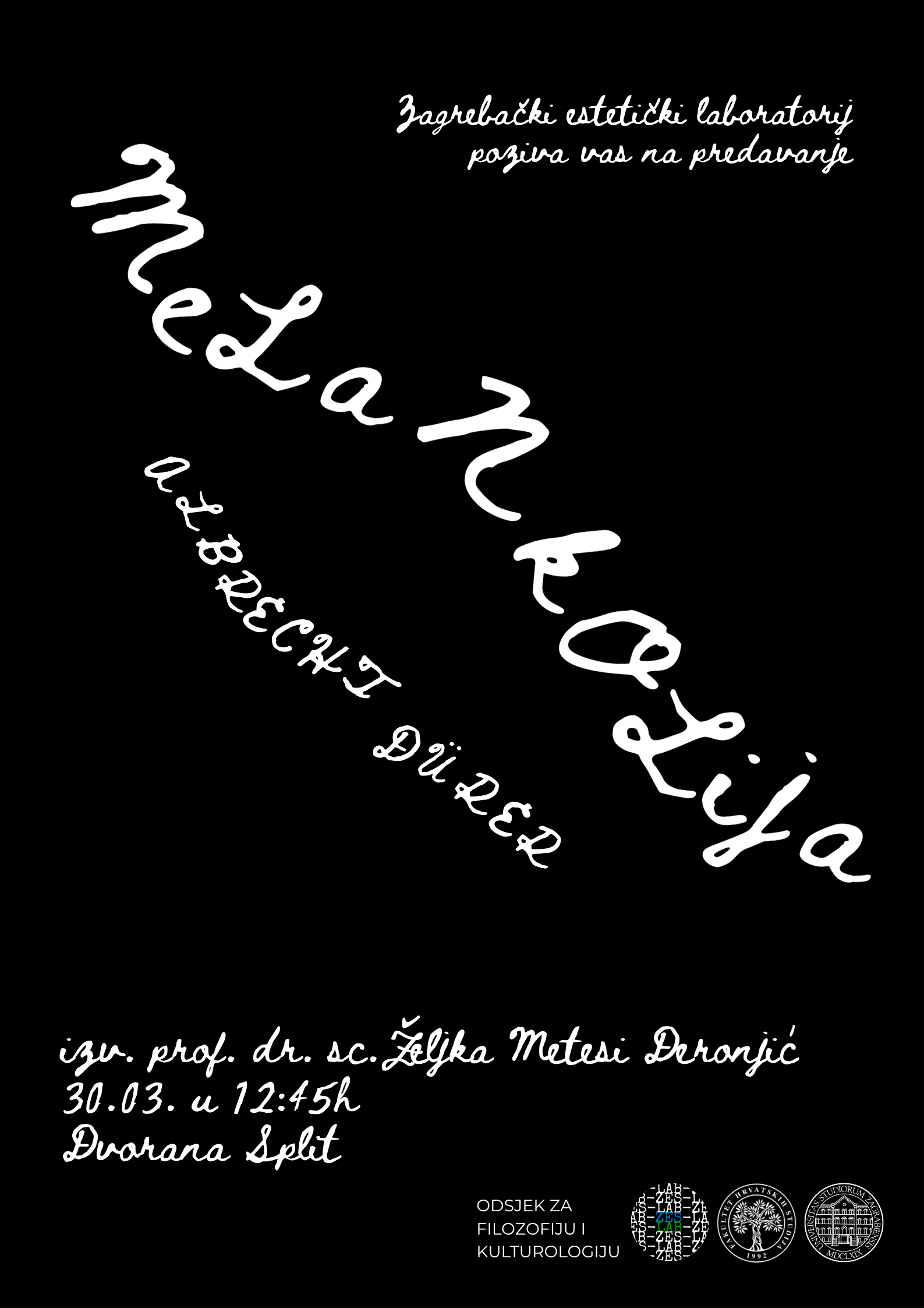 U sklopu Zagrebačkog estetičkog laboratorija 30. ožujka 2026. održano je javno znanstveno-popularno predavanje posvećeno interpretaciji grafike Melankolija I Albrecht Dürera, jednog od najintrigantnijih djela europske umjetnosti.