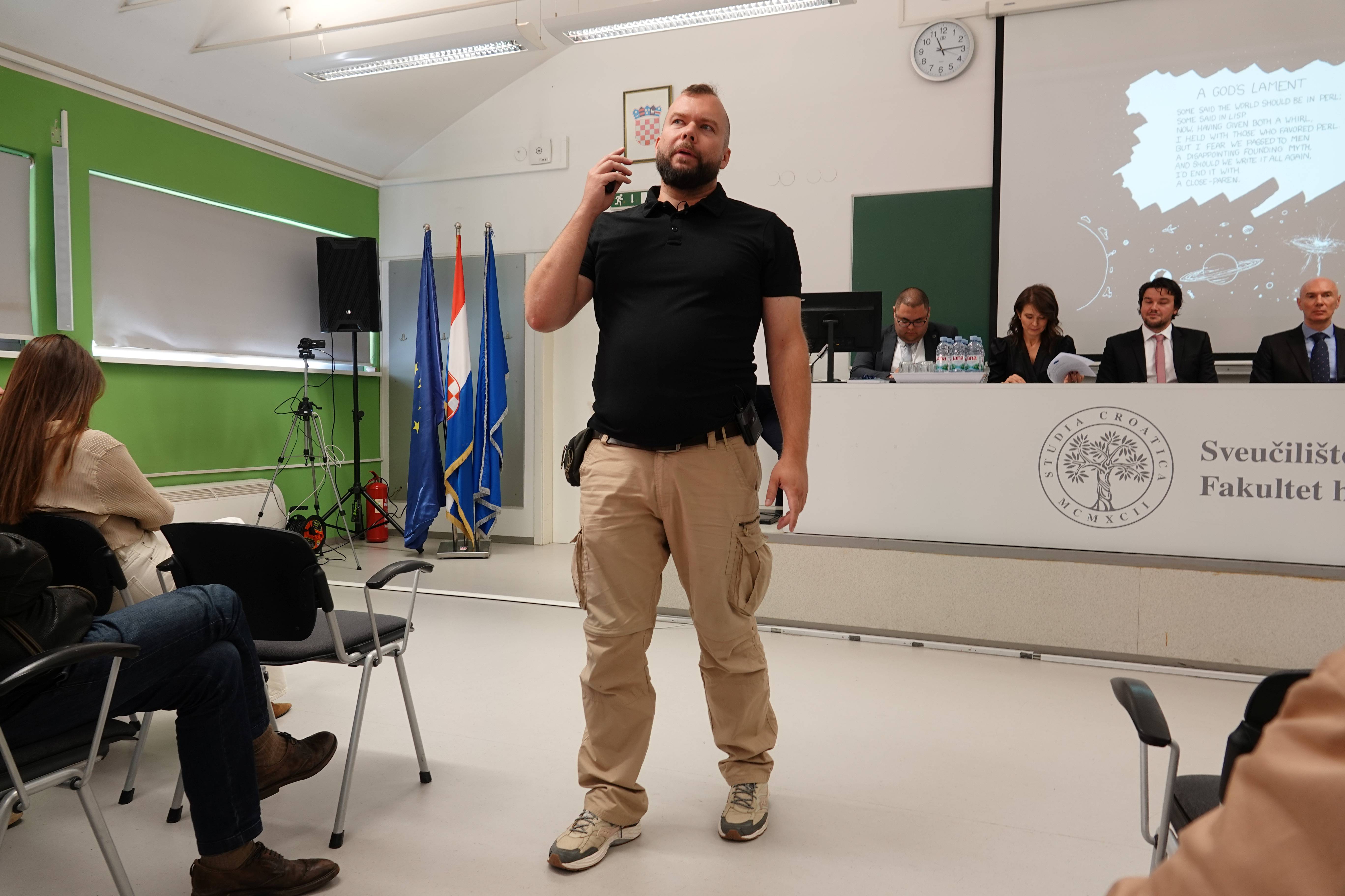 U srijedu, 1. listopada 2025. s početkom u 11 sati održano je uvodno predavanje za studente prve godine prijediplomskih studija Fakulteta hrvatskih studija. Uvodni dio započeo je intoniranjem hrvatske himne nakon čega su pozdravne govore održali dekan Fakultet hrvatskih studija izv. prof. dr. sc. Dario Vučenović i prodekan za nastavu i studente doc. dr. sc. Vanja Kopilaš. Uvodno predavanje održao je izv. prof. dr. sc. Sandro Skansi na temu „Umjetna inteligencija – apokalipsa i tosteri“. Studente je zatim pozdravila i predsjednica Studentskoga zbora Iva Ignjačić, a informacije o tehničkoj podršci novim je studentima dao voditelj računalne službe Ivan Kordić.