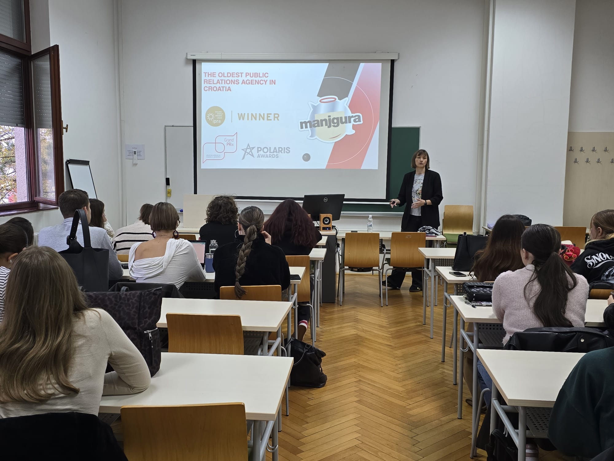 Predavanje je bilo namijenjeno studentima treće godine preddiplomskog studija komunikologije, među kojima su i Erasmus studenti, a pružilo im je priliku da iz prve ruke čuju kako izgleda oblikovanje i vođenje komunikacijskih kampanja u praksi hrvatskog tržišta.