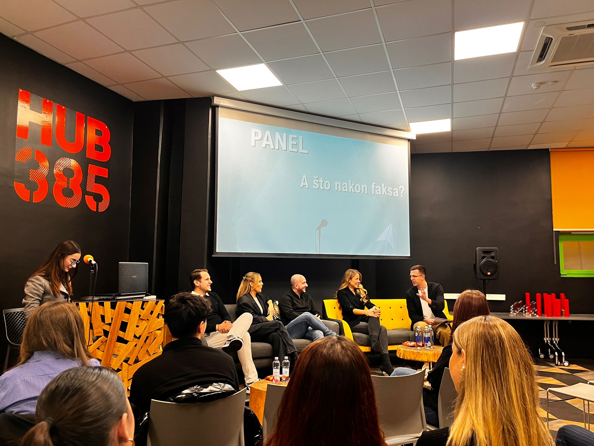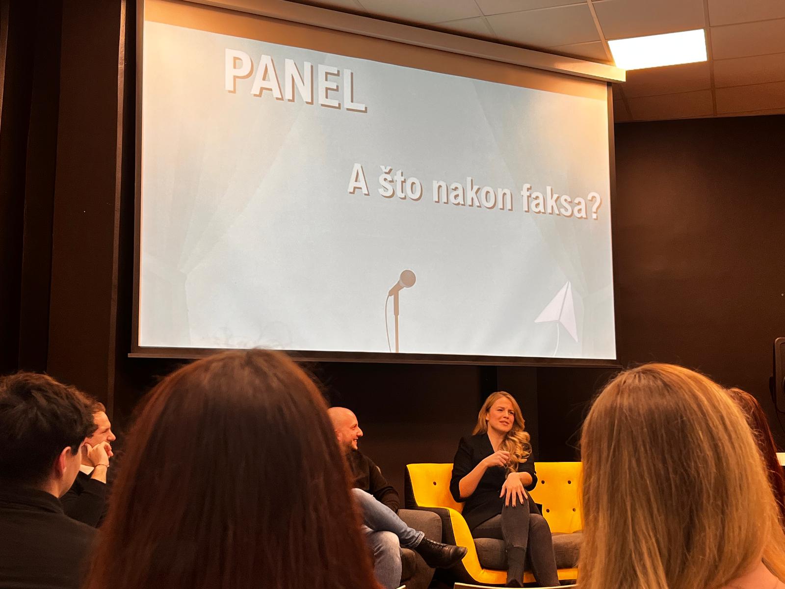 Treći panel, pod nazivom “A što nakon faksa?”, okupio je Dominika Omerovića, Valentinu Mezdić, Mladena Hrena i Teu Mihanović, uz moderaciju Marka Matijevića. Sudionici su govorili o prvim koracima nakon završetka studija, važnosti studentske prakse, prilagodbi poslovnom sustavu i izazovima s kojima se mladi susreću na tržištu rada. Podijelili su iskustva vezana uz rad na različitim kampanjama, raspodjelu budžeta i dinamiku timskog rada te istaknuli važnost postavljanja granica i prepoznavanja trenutka kada treba reći “ne”.
