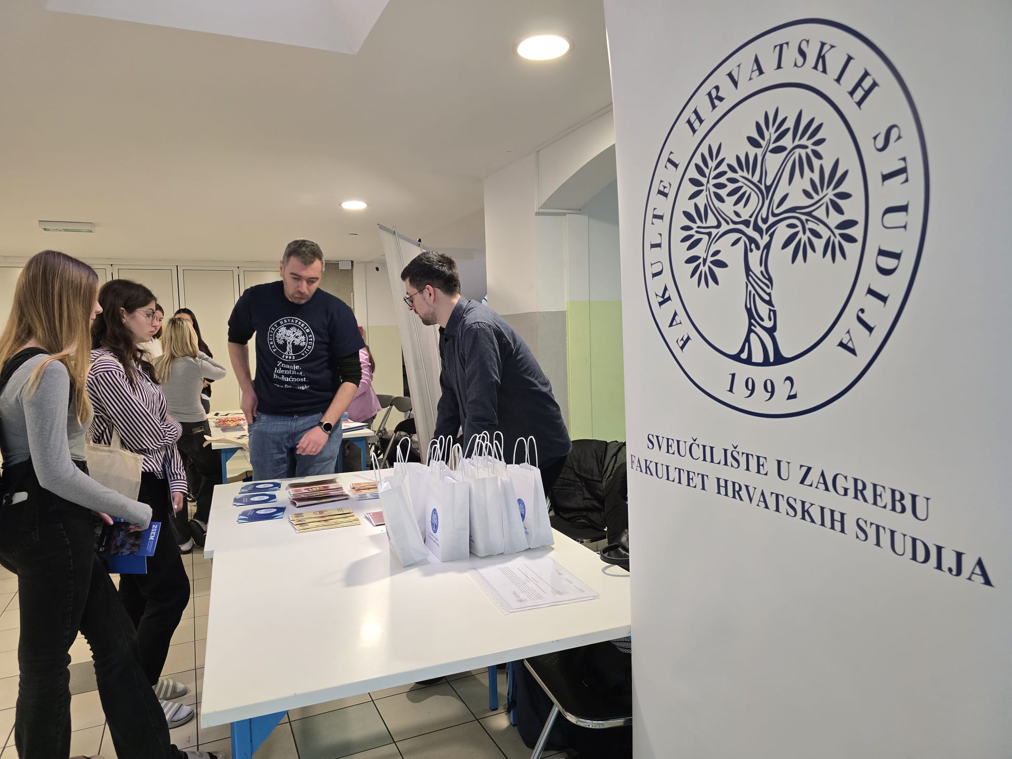 Na info-štandu Fakulteta hrvatskih studija maturanti su imali priliku postavljati pitanja i dobiti informacije iz prve ruke, ponajprije o studijskom programu sociologije, uvjetima upisa i mogućnostima zapošljavanja, dok su se neodlučni učenici informirali o samom studiranju i studentskom životu na kampusu Borongaj.