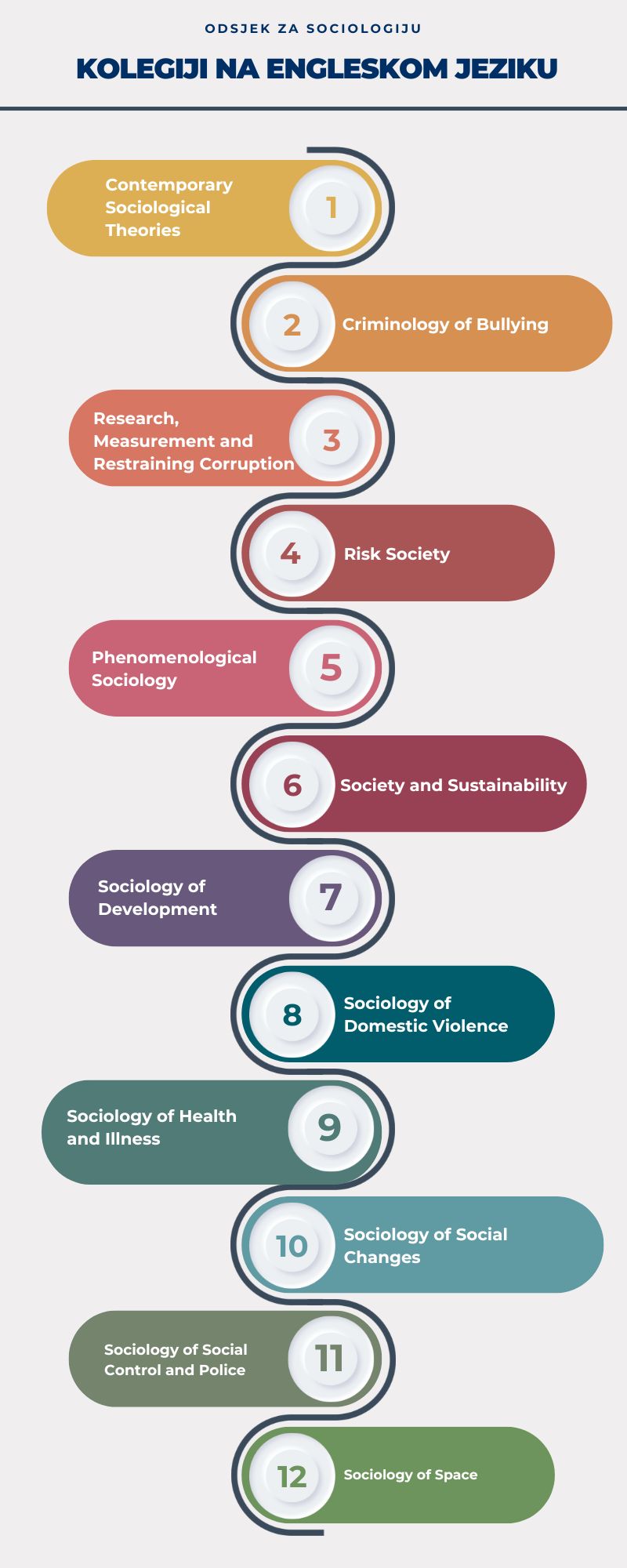 Prijediplomska i diplomska razina studija sociologije ustrojene su prema suvremenim međunarodnim znanstvenim standardima.