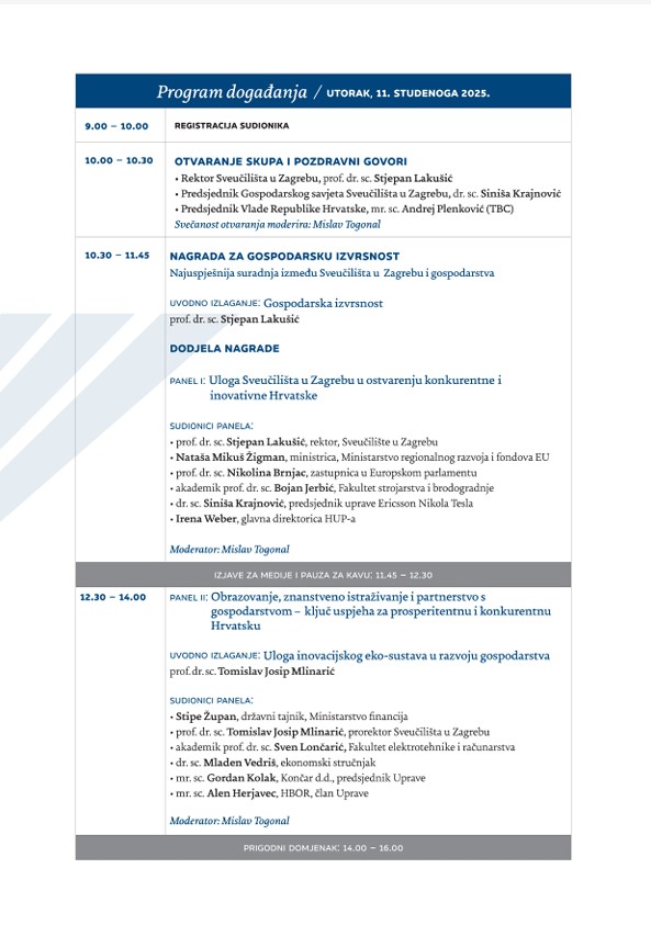 1. Gospodarski forum Sveučilišta u Zagrebu - Konkurentna i otporna Hrvatska - 11.11.2025.