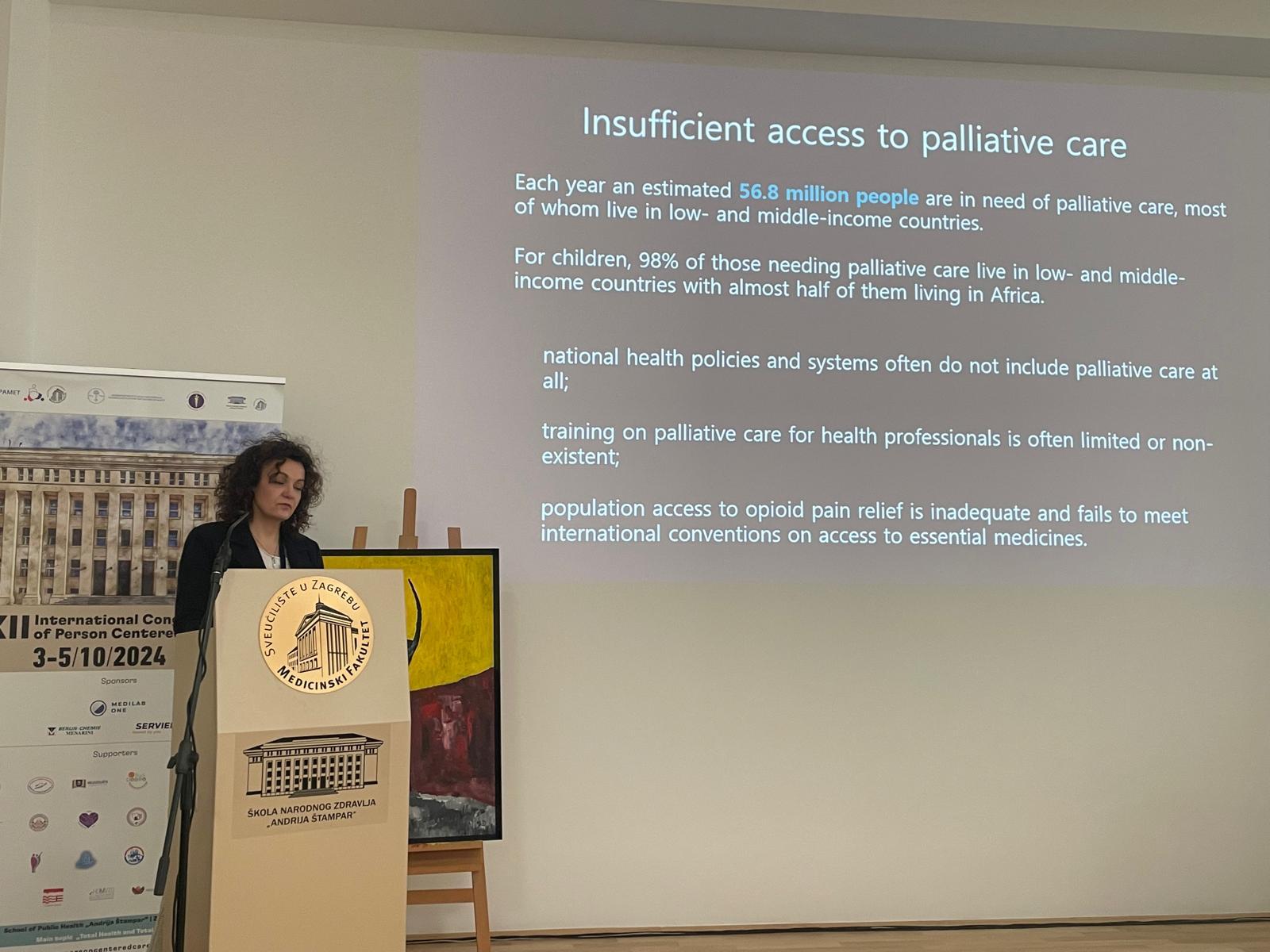 Izv. prof. dr. sc. Lovorka Brajković je održala pozvano predavanje na 12. Međunarodnom kongresu medicine usmjerene osobi pod nazivom Palliative care as Human Rights Care, koji se ove godine održava u Zagrebu, u Školi narodnog zdravlja „Andrija Štampar“ od 3.10.2024. do 5.10.2024. godine. Glavna tema kongresa je „Total Health and Total Care“ koja promovira glavne trendove u medicini i zdravstvu diljem svijeta s ciljem osiguravanja zdravstvene dobrobiti za sve osobe u njihovim zajednicama slijedeći ostavštinu profesora Andrije Štampara.