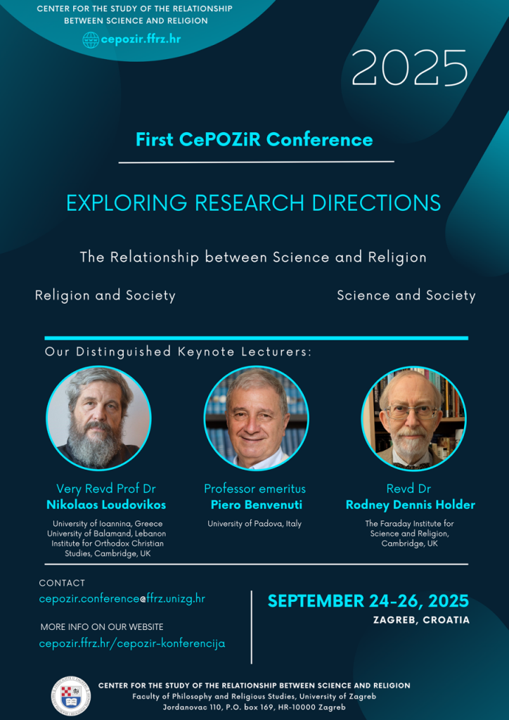 Doc. dr. sc. Vlatko Smiljanić s Odsjeka za kroatologiju i Odsjeka za povijest sudjelovao je na Prvoj međunarodnoj konferenciji CePOZiR (Center for the Study of the Relationship between Science and Religion), održanoj od 24. do 26. rujna 2025. na Fakultetu filozofije i religijskih znanosti Sveučilišta u Zagrebu. Skup je okupio istaknute znanstvenike i istraživače iz 15 zemalja, a bavio se temom u okviru odnosa znanosti i religije, religije i društva te znanosti i društva. Predavači na konferenciji CePOZiR 2025 dolazili su sa sveučilišta i instituta iz Hrvatske (Sveučilište u Zagrebu, Sveučilište u Zadru, Institut Ruđer Bošković), Slovenije, Italije (Sveučilište u Padovi, Nuovo SEFIR APS), Poljske (Papinsko sveučilište Ivana Pavla II. u Krakovu), Bugarske (Sveučilište „Sv. Kliment Ohridski“ u Sofiji), Finske (Sveučilište u Helsinkiju), Danske (Sveučilište u Kopenhagenu), Norveške (NLA University College), Ujedinjenoga Kraljevstva (Canterbury Christ Church University, Faraday Institute, Ulster University), SAD-a (Fuller Theological Seminary, Global Methodist Church), Izraela, Grčke (Sveučilište u Ioannini), Rumunjske, Slovačke, Sjeverne Makedonije (Sveučilište Sv. Ćirila i Metoda u Skopju)