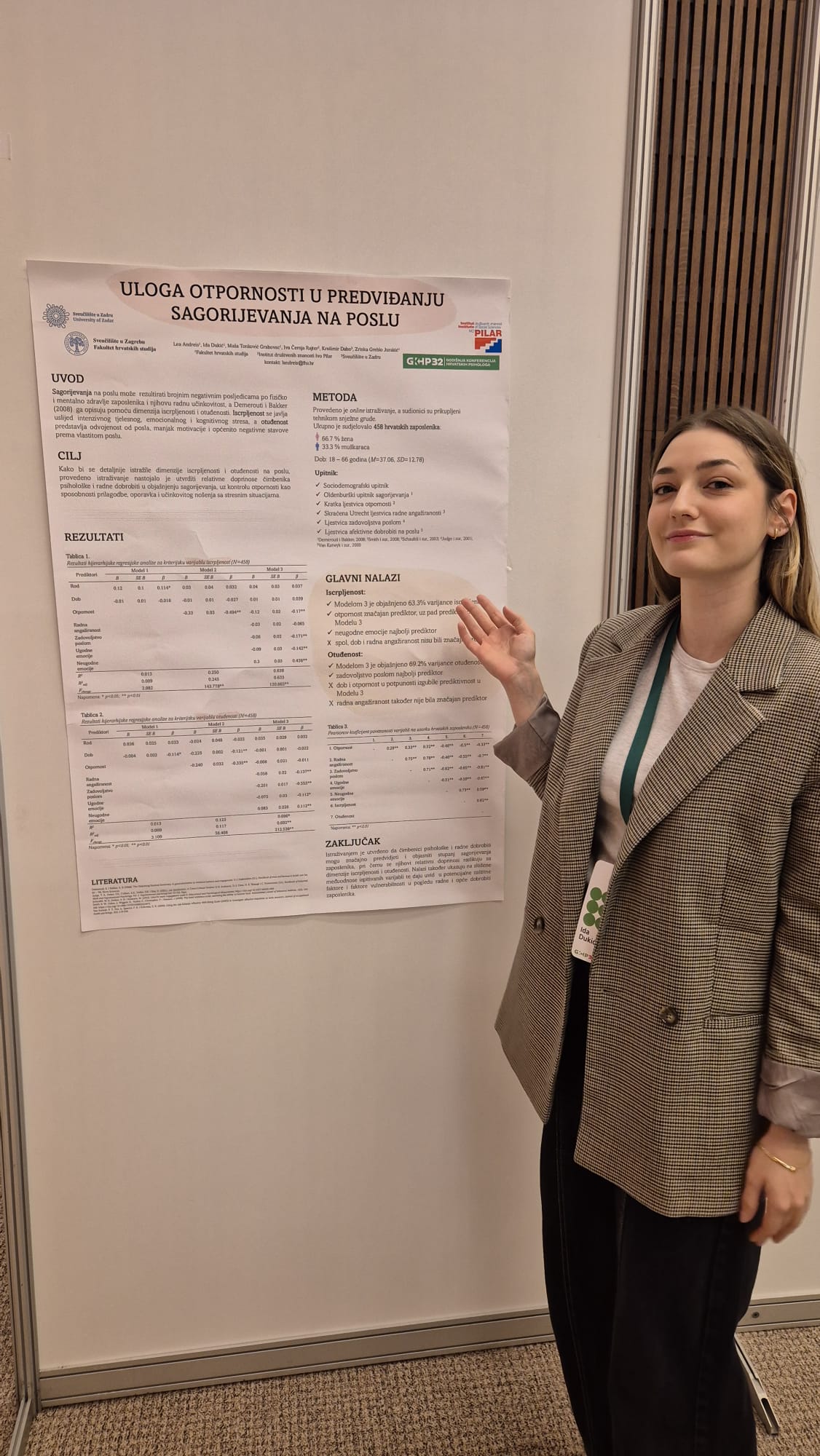 Izvanredna profesorica dr. sc. Zrinka Greblo Jurakić sudjelovala je na okruglom stolu Psihologija sporta i vježbanja u Hrvatskoj: prošlost, sadašnjost, budućnost te je vodila simpozij Mentalno zdravlje i prevencija rizičnih ponašanja u sportskom okruženju. Naša bivša studentica te, od nedavno, magistrica psihologije Lara Cibenečki u okviru simpozija iz psihologije sporta održala je prezentaciju Odrednice sagorijevanja kod sportašica i sportaša koji se bave vodenim sportovima temeljem istraživanja kojeg je pod mentorstvom izv. prof. dr. sc. Zrinke Greblo Jurakić provela u svrhu izrade diplomskog rada.